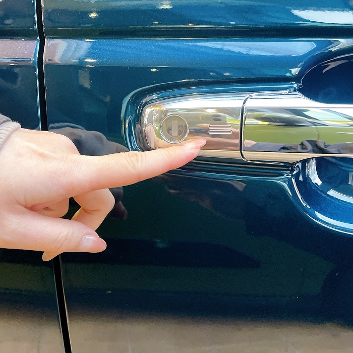 ② ドアの取っ手のリクエストスイッチに触れてドアロック。