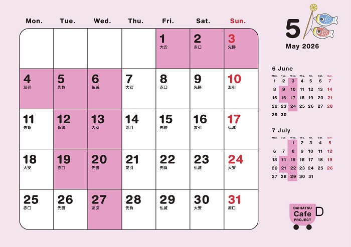 本日はゴールデンウィークの休業日と5月の営業日・定休日のご案内です。
