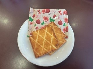 8月のおもてなしスイーツは福井県産の塩を使った「福井いちじくバターガレット」です。