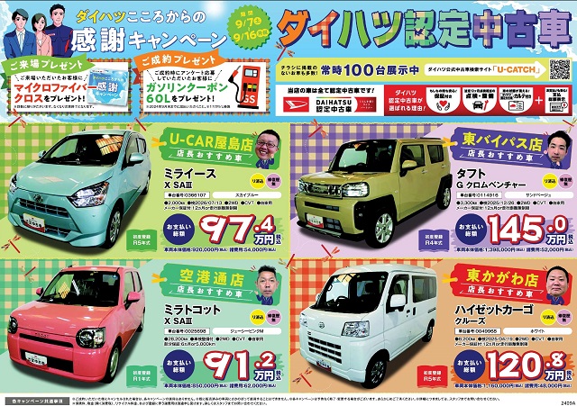 『ダイハツ心からの感謝キャンペーン』認定中古車のご紹介です!