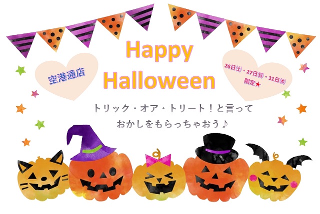 10月26日(土)27日(日)31日(木)の3日間☆お子様限定☆ハロウィンのお菓子をプレゼント