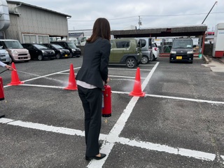 火事が起きたらどのように行動するのか、消火器の使い方などについて消防訓練を行いました。